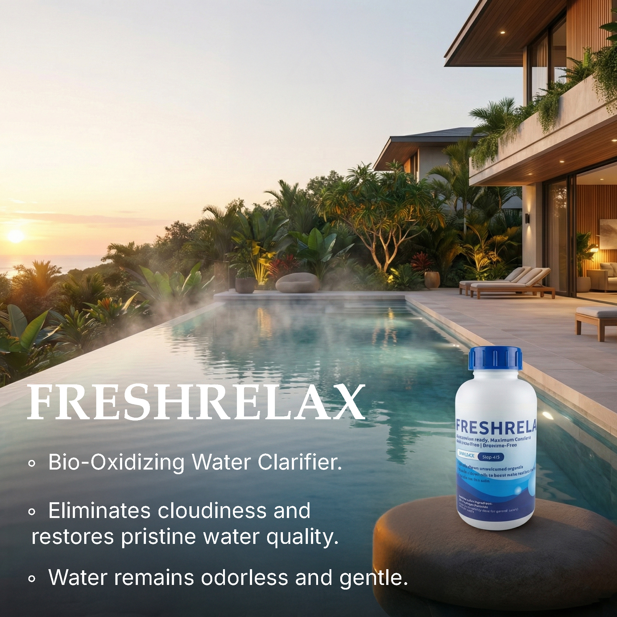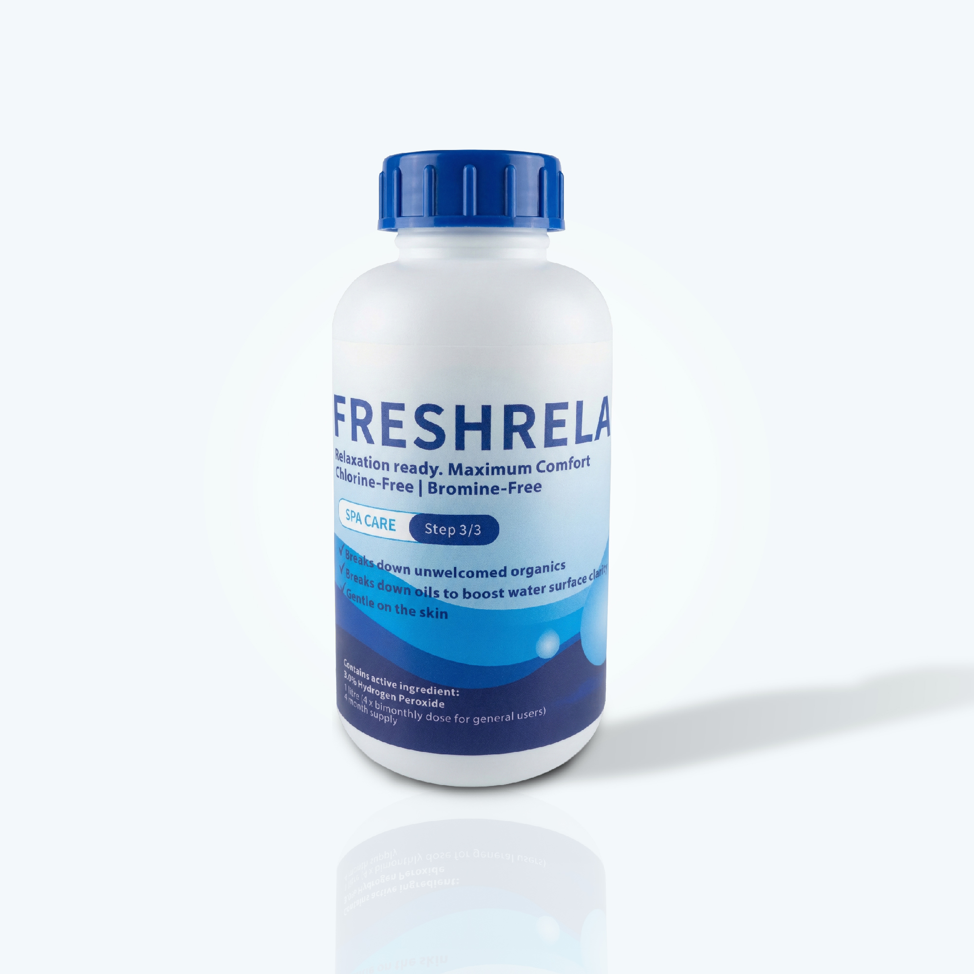 FreshRelax™ is engineered to tackle the invisible accumulation of organic waste—body oils, perspiration, and metabolic residue—that inevitably builds up during intense recovery sessions. Powered by a stabilized 3.0% Hydrogen Peroxide solution, this formula triggers a rapid oxidative reaction that breaks down organic compounds on a molecular level. It effectively “shocks” the water, eliminating cloudiness and surface foam to restore a pristine, sparkling appearance. Because it utilizes oxygen rather than chlorine to do the heavy lifting, your water remains odorless and gentle, ensuring your next plunge focuses entirely on physiological recovery, not chemical exposure.